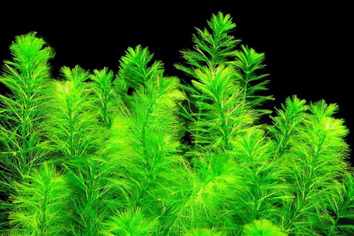 Colour - This plant is grown in murky ponds and will have dark green feathery foliage. In an aquarium with GOOD LIGHT it should turn a brighter green (see photos). In a clear water pond it will get greener